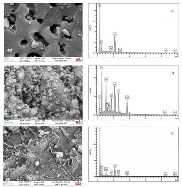 將炭化生物質(zhì)與氯化鈉分別以1:0、1:1和1:2的比例混合,通過化學(xué)活化來制備活性炭,接著通過SEM-EDS和XRF分析來確定活性炭的形態(tài)(圖1),表明活性炭1:0具有多孔表面,但是在用氯化鈉活化后,檢測(cè)到高度光滑的織構(gòu);钚蕴康脑亟M成通過SEMEDS和XRF評(píng)估,選擇了三個(gè)典型點(diǎn)來檢查元素分析。顯然,活性炭1:0主要由碳(C)和氧(O)組成,其中C元素的含量為78.84wt%。至79.65wt%。O元素的含量為20.35wt%至21.16wt%。在活性炭上活化了不同的氯化鈉后,更換了元素。
