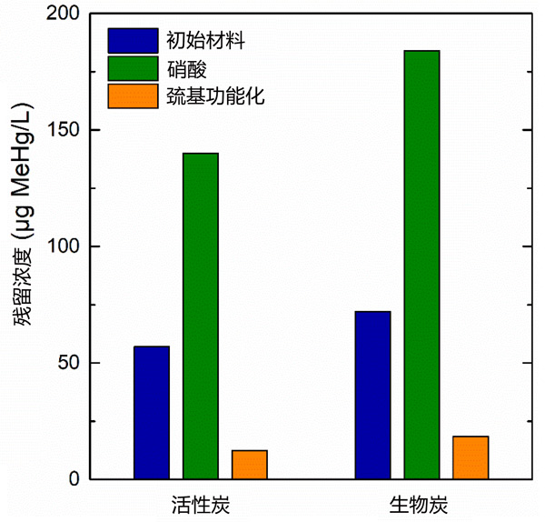 汞被對生物體具有高毒性,用于處理汞或甲基汞污染的水的方法不多,比如有吸附、混凝、過濾和生物過程。然而,到目前為止,只有吸附法在處理用于飲用的水時是比較可靠的。在接觸中與水相有關(guān)的主要形式是甲基汞,本次我們使用兩種碳基吸附材料,即活性炭和用來對照的生物炭,通過在其表面引入硫醇活性基團(tuán)進(jìn)行改性,以ppb濃度水平從類天然水中去除甲基汞。