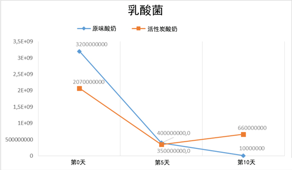 經(jīng)測定,在含有活性炭的酸奶和原味酸奶樣品的第0天、第5天和第10天,沒有菌群和總酵母霉菌(PDA)生長。測定了總?cè)樗峋?圖3)。