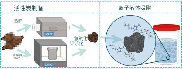 目前,處理含水相中離子液體的方法包括高級氧化法、生物降解法、膜分離法和吸附法等。其中,吸附法因其操作簡便、成本相對較低、設計靈活且通常不產生有害副產物等優(yōu)勢,被認為是最具應用前景的技術路徑之一。吸附法的核心在于吸附劑;钚蕴孔鳛樽顐鹘y(tǒng)且應用最廣泛的吸附劑,具有發(fā)達的孔隙結構、巨大的比表面積和豐富的表面化學官能團,對多種有機污染物展現出卓越的吸附能力。然而,商業(yè)活性炭生產成本較高,且對特定污染物(如離子液體)的吸附選擇性和容量仍有優(yōu)化空間。