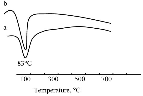 利用DTA技術(shù)研究了煅燒過程中催化劑的性質(zhì)變化。圖1顯示了煅燒和干燥活性炭載體的DTA曲線。兩個樣品在83℃附近只有一個吸熱峰。該峰對吸附水的解吸有貢獻?紤]到活性炭是具有極高容量和高吸附速率的優(yōu)異吸附劑的事實,甚至在樣品干燥或煅燒之后峰值出現(xiàn)也就不足為奇了。兩種樣品的DTA曲線沒有明顯差異,表明煅燒對載體的熱性質(zhì)基本上沒有影響。
