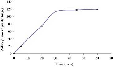 活性炭對廢水中有機物的吸附不僅受活性炭劑量的影響,還受到吸附劑在反應(yīng)混合物中的保留時間的影響。為了確定活性炭吸附過程的最佳保留時間,在最佳吸附劑(0.75 g / L)和幾個處理過的廢水樣品上進(jìn)行了實驗。分析殘余的COD。所獲得的數(shù)據(jù)顯示在圖3中顯示了吸附能力(q)隨時間的變化。吸附能力隨著時間的推移而增加,并且COD水平隨著時間而降低。30 min 后COD的去除率為77%,q達(dá)到113 mg COD / g。因此,最佳保留時間選擇為30 分鐘。