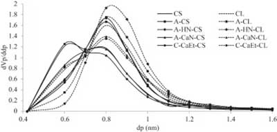 下圖顯示了改性活性炭的微孔尺寸分布。隨著孔隙變寬,椰殼活性炭的平均孔徑由于HNO 3而增加,而Ca(NO 3)2則減少。然而,煅燒表現(xiàn)出最大的孔徑減小,因?yàn)?形成平均尺寸為0.4nm的更窄的微孔。煅燒樣品顯示在比那些胺化Ca的碳的微孔更好的改善(NO 3)2,其可有效地提高二氧化碳物理吸附。這可能是由于在相鄰孔壁上形成更多的CaO,導(dǎo)致孔隙空間減少。