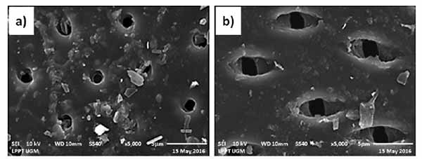 圖1:SEM顯微照片(a)炭,(b)活性炭。