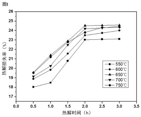 再生溫度和熱解持續(xù)時(shí)間是活性炭再生的重要參數(shù),因?yàn)橛袡C(jī)物可在高溫下分解。此外,再生溫度和持續(xù)時(shí)間也會(huì)影響減重百分比。熱解持續(xù)時(shí)間和熱解溫度對(duì)活性炭熱解損失率(LRP)的影響如圖1所示 。如圖1所示對(duì)于所有熱解溫度,LRP隨著熱解時(shí)間的延長(zhǎng)而增加。在2小時(shí)時(shí)獲得最大LRP。2小時(shí)后,LRP無(wú)明顯差異。對(duì)于相同的熱解時(shí)間,LRP在550-650℃的區(qū)域增加,而在650-750℃的區(qū)域產(chǎn)生墊料差異。在650℃達(dá)到最大LRP(24.5%),這表明吸附在活性炭上的有機(jī)物質(zhì)的分解完全完成。因此,最佳再生條件為650℃和2h,考慮到能量消耗和再生的經(jīng)濟(jì)性。