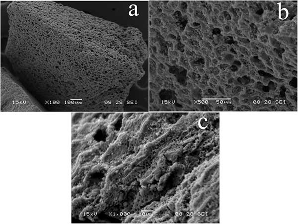 我們通過(guò)活性炭的SEM可以看到表面的多孔結(jié)構(gòu)(圖1a)。此外,在用酸浸泡后,在活性炭表面可以觀察到大量的多孔和松散結(jié)構(gòu)(圖1b和c)。由于活性炭具有較大的表面積,多孔結(jié)構(gòu)和高活性表面,因此主要用于吸附污染物。因此,活性炭的強(qiáng)吸附能力被用于磺胺嘧啶吸附實(shí)驗(yàn)。