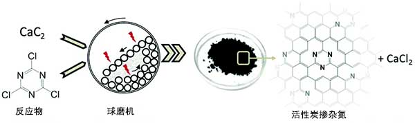 圖1:室溫下合成活性炭的機(jī)械化學(xué)反應(yīng)的概念。