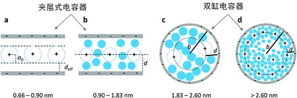 (1)對于亞納米孔(<2nm)的恒定電容的假設(shè)與許多觀察結(jié)果相矛盾并且過于簡單化。已經(jīng)在許多場合觀察到電解質(zhì)離子在1nm以下的孔中的限制作用。