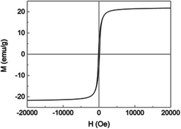 活性炭復合纖維材料在室溫下-20000至20000 Oe范圍內的磁滯回線在圖3顯示,其形狀是典型的S曲線,對應于超順磁行為。包括飽和磁化強度Ms,磁矯頑力HC和剩余磁化強度Mr的磁特性。活性炭復合材料的Ms低于塊狀Fe3 O4,這可以通過活性炭載入Fe3O4納米粒子來解釋,這與發(fā)現的結果非常一致。