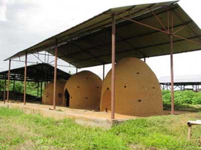 在這個過程中,活性炭前植物材料被切成均勻尺寸堆在窯中水平堆放(圖1)。然后用磚塊封閉門,并在外面抹上泥漿,以便更好地隔熱并防止泄漏。通過在水平和垂直方向上調(diào)節(jié)開口將溫度保持在400-500℃來實現(xiàn)碳化。所有開口在2天后關(guān)閉,以便不允許空氣進入窯以防止活性炭原炭化料著火。冷卻一天以將溫度降低至100℃。將炭化料從窯底部的開口中取出并洗滌,干燥并粉碎,并進一步進行化學(xué)活化,兩種活性炭分別用硝酸和磷酸活化獲得四種不同屬性的活性炭。并用蒸餾水洗滌活性炭以除去過量的酸,并在150℃下干燥12小時,獲得的粉末狀活性炭具有40-50μm篩目的粒度。