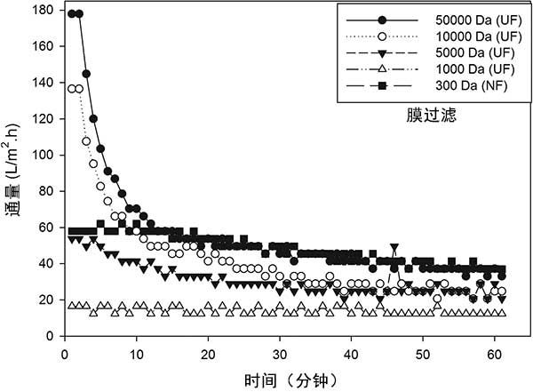 圖2:UF和NF膜的廢水通量。