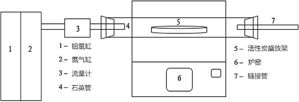 將三種棕櫚廢物預(yù)處理的樣品碳化并通過一步法在700℃下在氬氣流下使用管式爐以10℃/min的加熱速率活化。當(dāng)達到700℃的設(shè)定溫度時,以5L/min的流速代替氮氣的氬氣流,以活化1小時的保持時間。圖2顯示了一步物理活化的實驗裝置的示意圖。然后使樣品冷卻并儲存在密閉容器中以避免孔吸附大氣氣體。