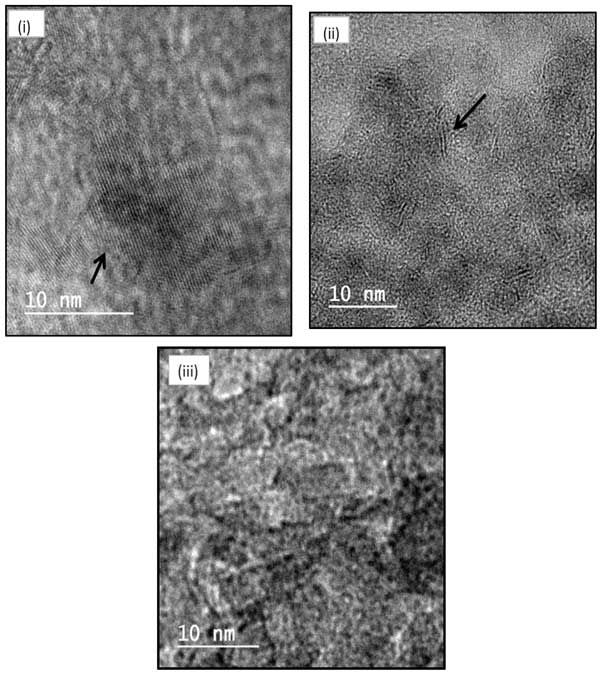 圖1:制備的鎳鉬催化劑(1)活性炭,(2)氧化鋁和(3)二氧化硅的透射電子顯微鏡。