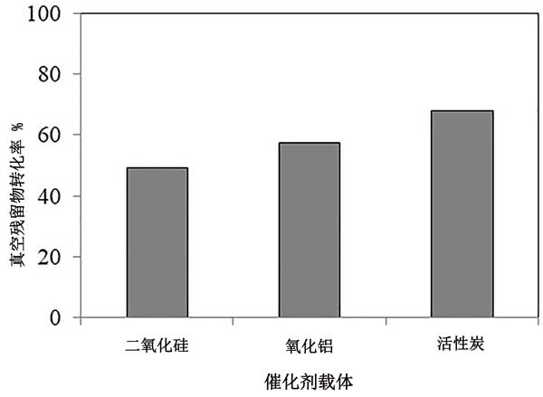 用活性炭,二氧化硅和中孔氧化鋁載體制備加氫處理催化劑,并在410°C的溫度和10MPa的壓力下進(jìn)行真空殘留物加氫處理反應(yīng)的測(cè)試。對(duì)比性能顯示,盡管二氧化硅負(fù)載的催化劑具有非常高的表面積,但由于其較低的孔徑,它在殘?jiān)豳|(zhì)過程中極易形成焦炭。反過來,這導(dǎo)致轉(zhuǎn)化率低和液體產(chǎn)品收率低。與二氧化硅負(fù)載的催化劑相比,活性炭負(fù)載的催化劑表現(xiàn)出更高的轉(zhuǎn)化率。原因之一是活性炭的孔徑分布比二氧化硅高;钚蕴看呋瘎┑挠行钥蓺w因于其較大的孔徑,較高的孔體積以及活性金屬的較好分散性。這些對(duì)于殘余物加氫處理催化劑是有利的性質(zhì)。